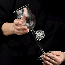 عتيق منقوش على شكل وردة زجاج بأرجل عالية ، نبيذ زهور رومانسي في عيد الحب ، نبيذ حلو فرنسي