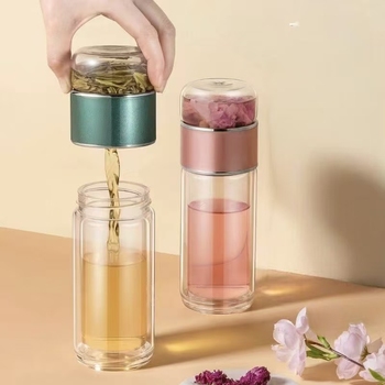 Tazza da tè in vetro isolante con infusore-il Design a doppia parete mantiene la temperatura, bicchiere portatile a prova di perdite per il pendolarismo
