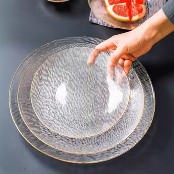 Элегантная Хрустальная тарелка с золотыми краями-круглое блюдо ручной работы для свадьбы, сырная доска, десерт, роскошная домашняя посуда
